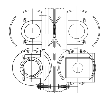 a)三组弹性凸轮组轴承座出厂调整到位(由专用量具检测),保证了两侧凸轮组分别在同一条轴线上,保证了传动齿轮组上的传动轴受力均匀,使用寿命长。